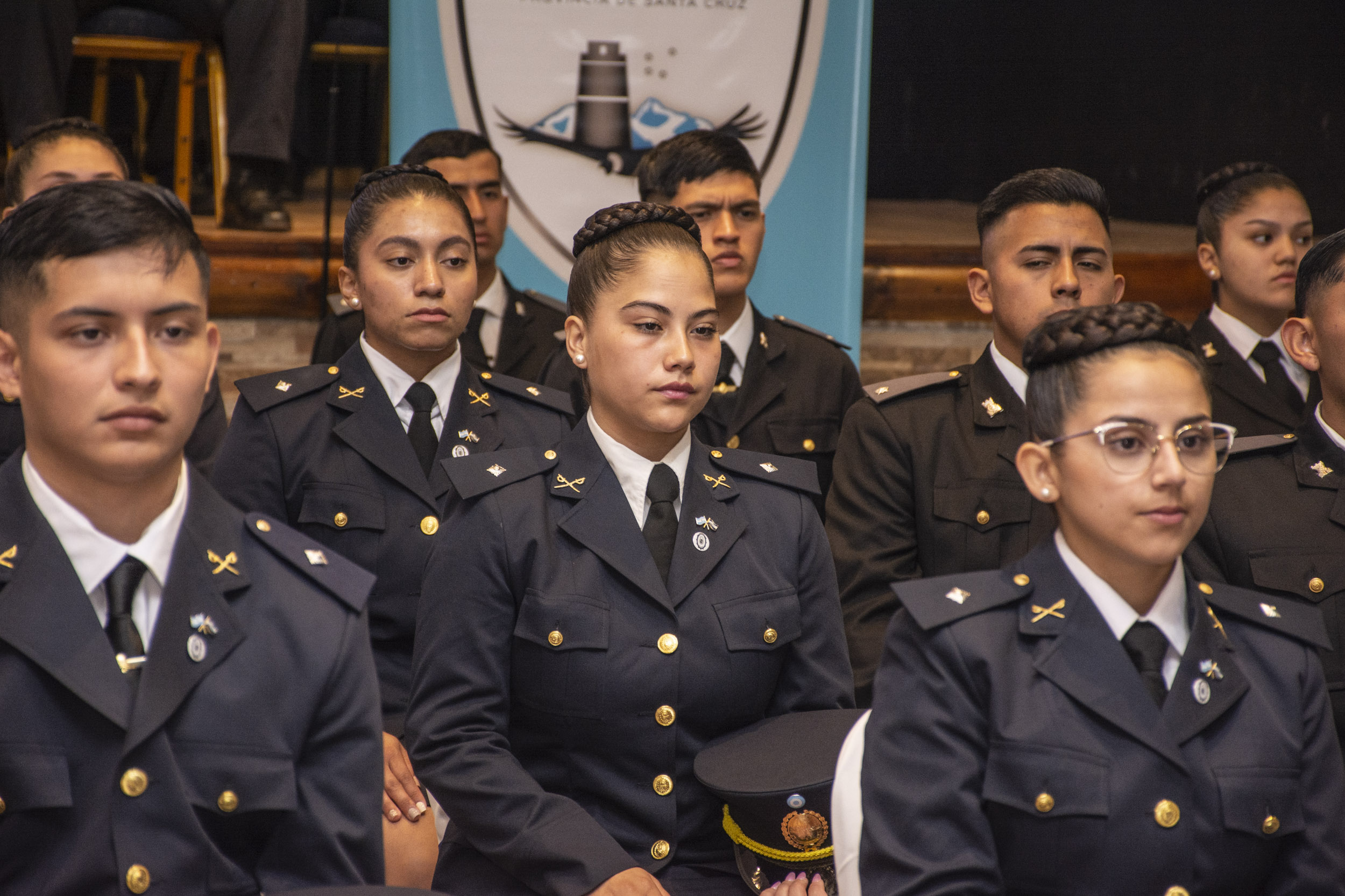 En su discurso, la directora del Departamento Escuela de Cadetes, comisario mayor María Valeria Herrera, expresó el inmenso honor de culminar un nuevo ciclo educativo y de poner al servicio de la comunidad santacruceña a estos 65 nuevos servidores públicos. Destacó que, si bien son diferentes en su especialización —incluyendo profesionales en seguridad, bomberos, expertos en criminalística, investigaciones y penitenciarios—, todos convergen en un mismo noble concepto: "Proteger, servir y garantizar el bienestar y la justicia de los ciudadanos de la provincia de Santa Cruz".
