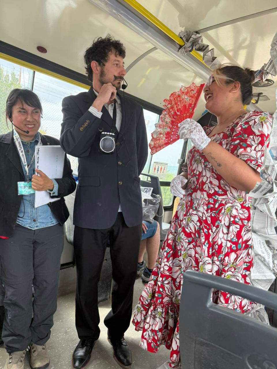 La propuesta consistió en un city tour histórico donde se recrearon escenas vinculadas a los primeros años de Caleta Olivia, desde la llegada de los pioneros ganaderos hasta el impulso petrolero que marcó su desarrollo. Durante el recorrido, trabajadores del área turística interpretaron personajes de época para transmitir, de forma sencilla y cercana, cómo fue creciendo la identidad local y cómo el turismo comenzó a tener protagonismo como una opción económica para la comunidad.