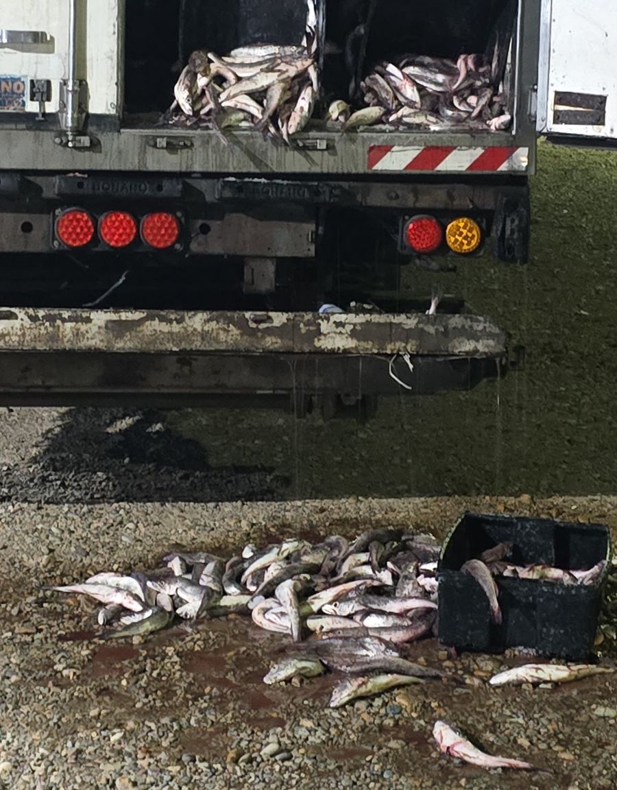 Durante el control se constató que el vehículo no contaba con habilitación provincial para el transporte de cargas, si bien el resto de la documentación del transporte se encontraba en regla. Además, la carga presentaba irregularidades, ya que el pescado era trasladado entero, sin procesamiento, y sin la documentación correspondiente.