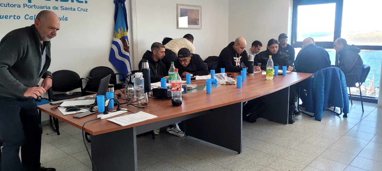La actividad se desarrolló los días 13 y 14 de abril en el SUM de la Unidad Ejecutora Portuaria de Santa Cruz (UN.E.PO.S.C.), en el Puerto Caleta Paula de Caleta Olivia, y estuvo a cargo de profesionales del Instituto Nacional de Investigación y Desarrollo Pesquero (INIDEP), Juan de la Garza y Emiliano Pisani, responsables del Programa de Investigación de la Pesquería del Langostino.