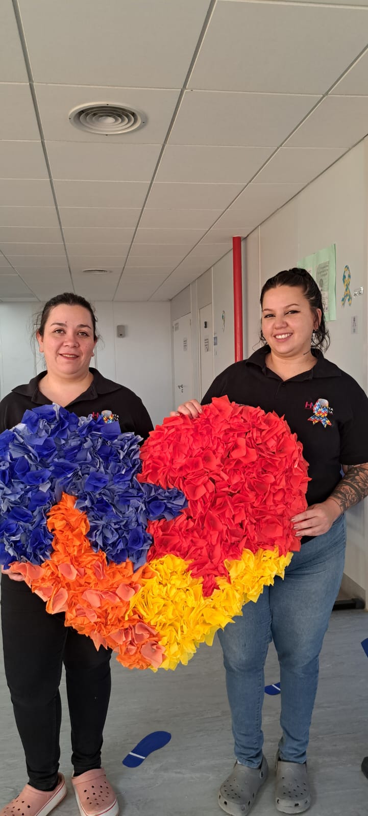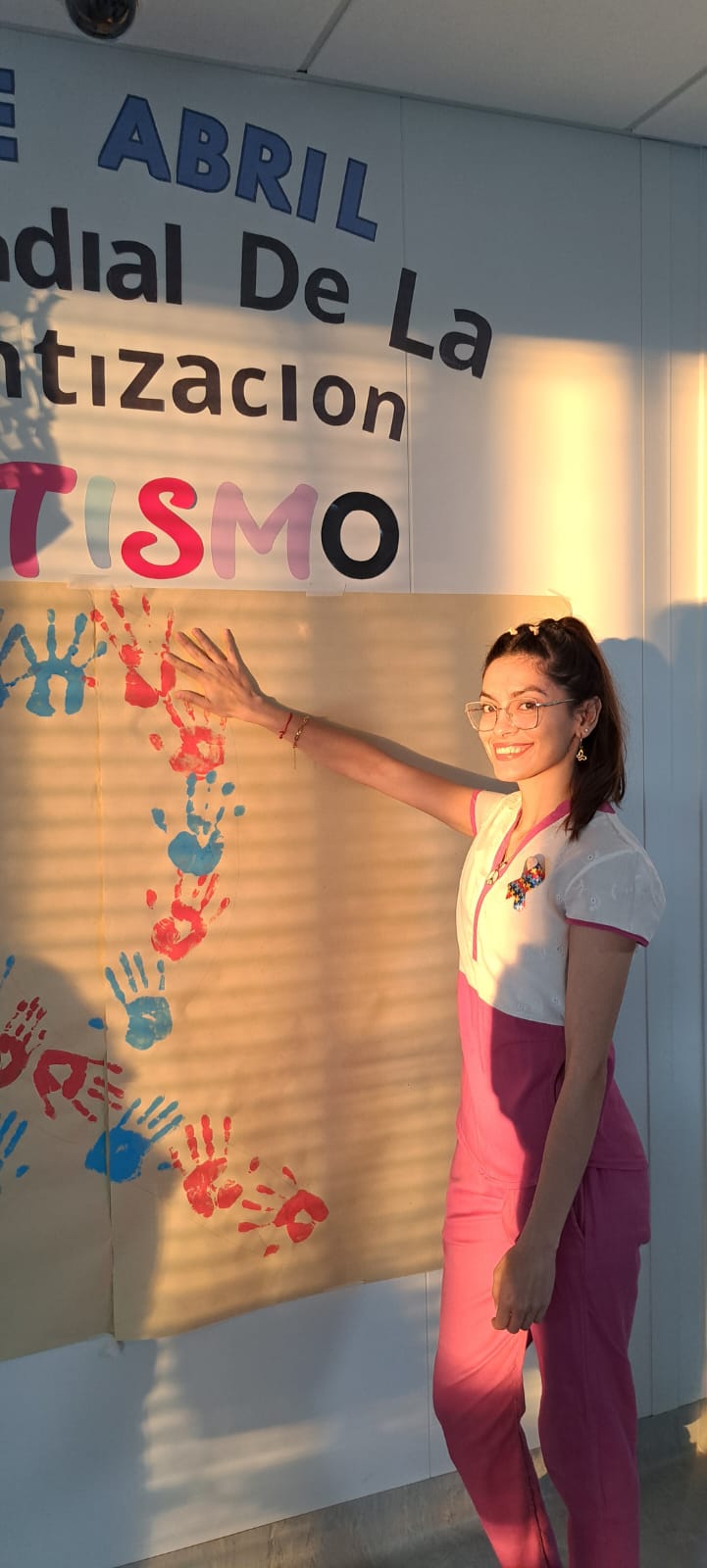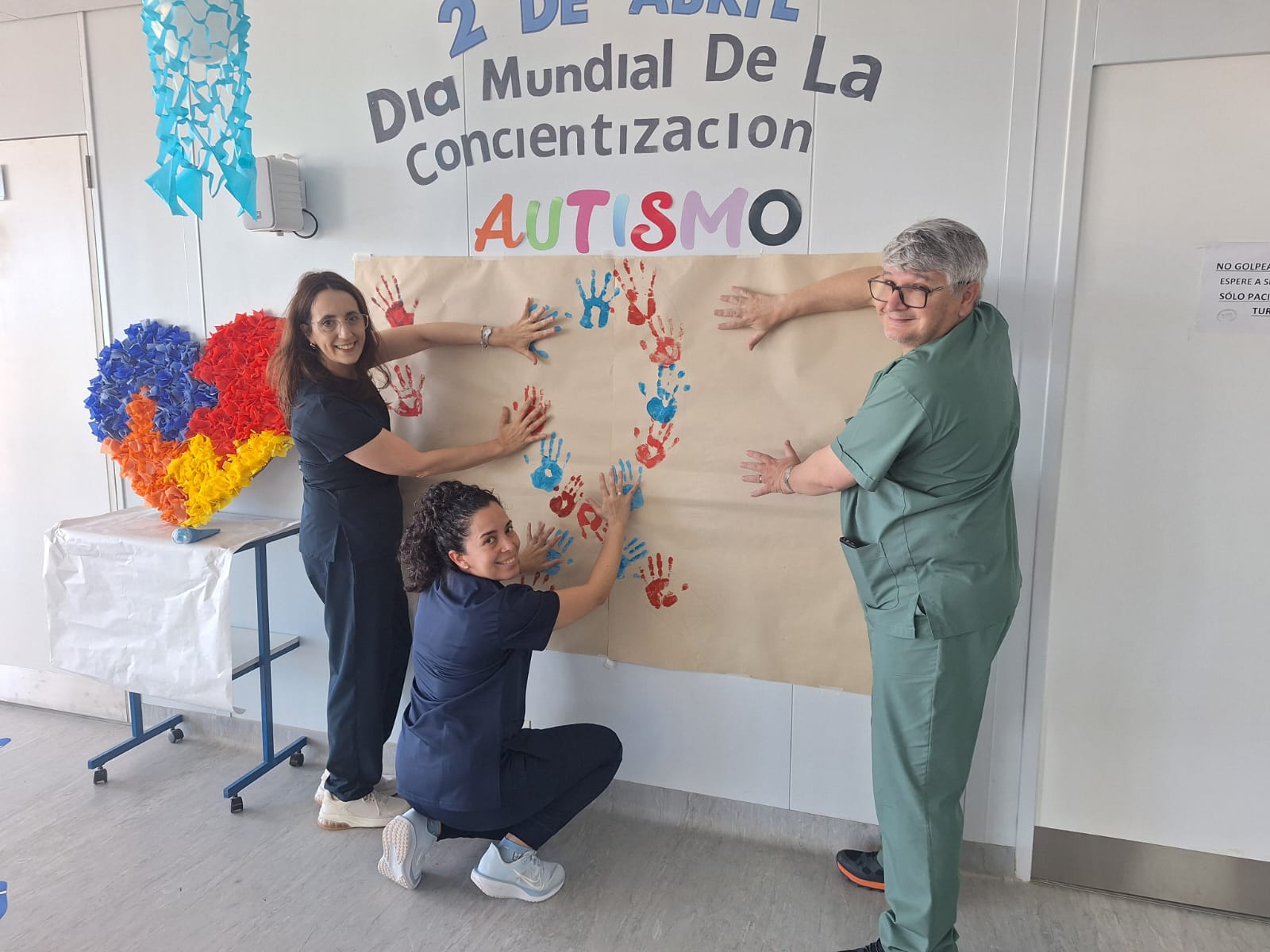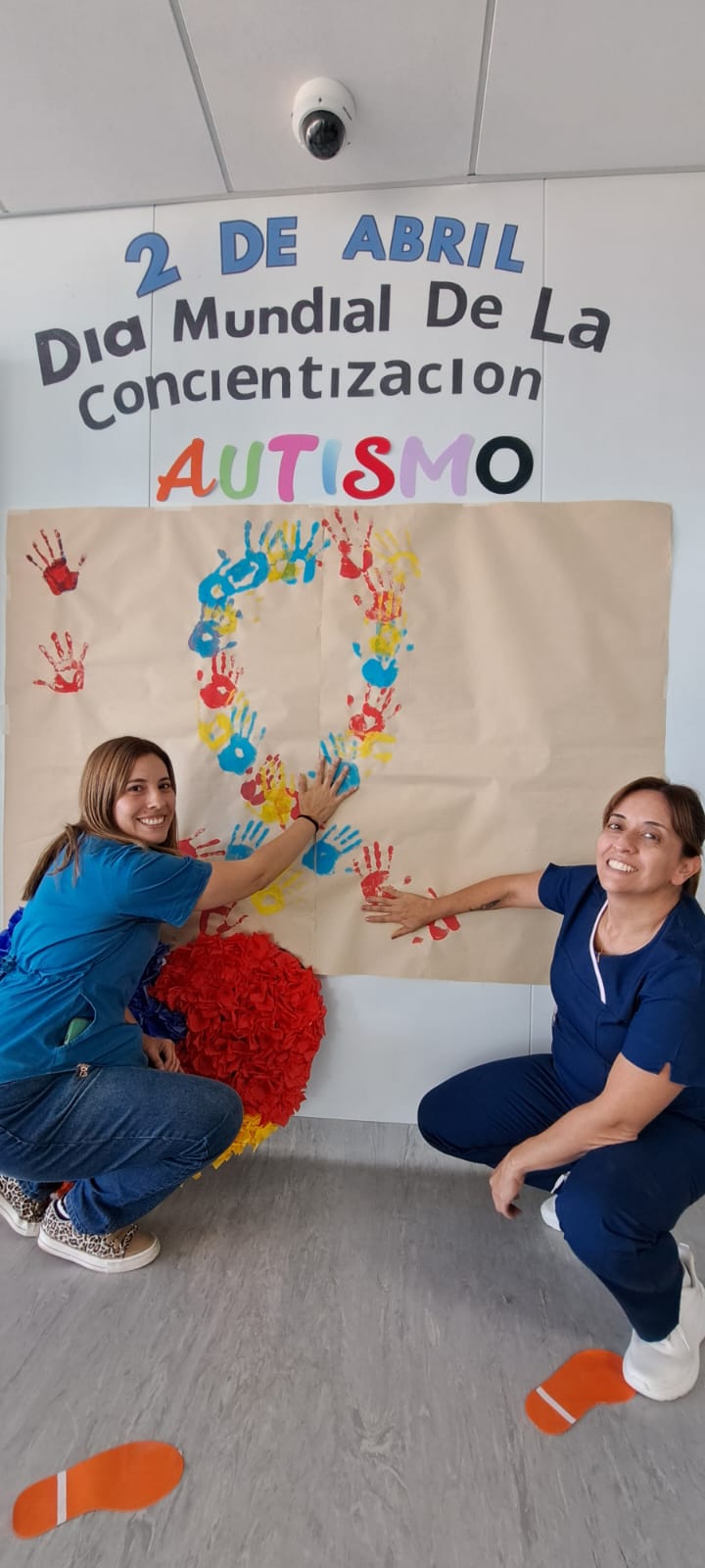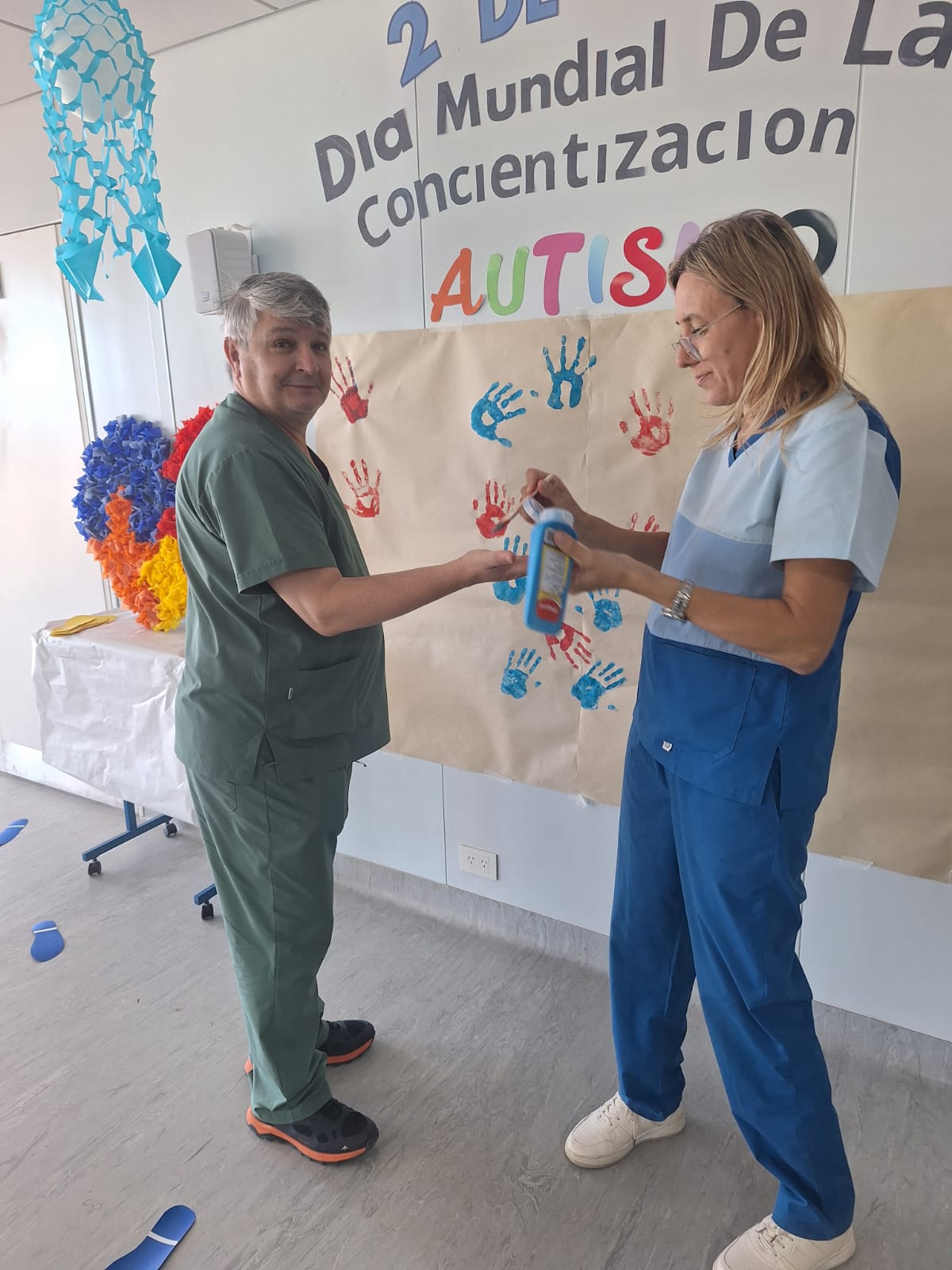 Durante la actividad, el equipo de salud adoptó medidas estrictas de cuidado sensorial, como el uso de calzado silencioso y la vestimenta idéntica a la mostrada en las fotografías para facilitar el reconocimiento. El hospital fue señalizado con pictogramas en áreas clave como admisión, enfermería y consultorios, además de contar con espacios equipados con pisos de goma y rincones de juegos sensoriales coordinados por psicólogas y agentes sanitarios. El personal se identificó con el símbolo del autismo, reforzando la coherencia visual y el compromiso institucional con la sensibilización sobre esta condición.