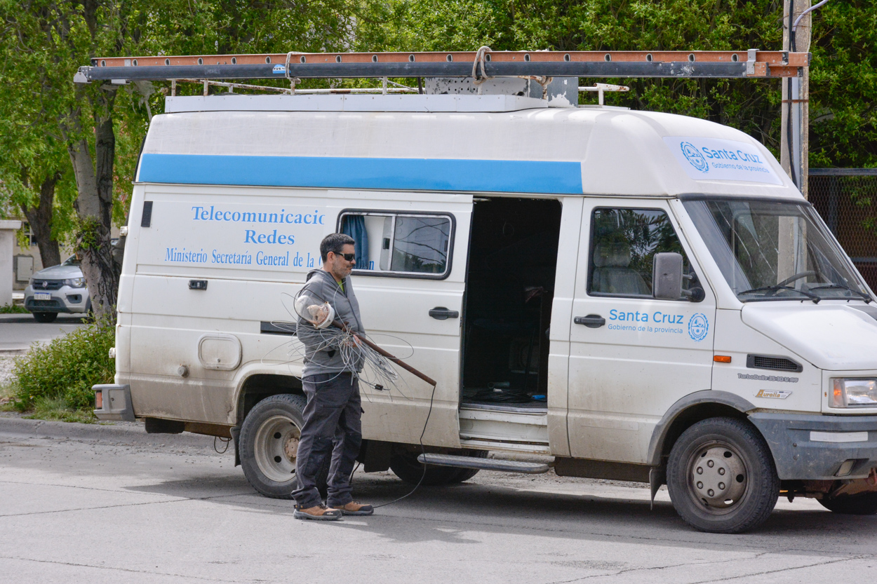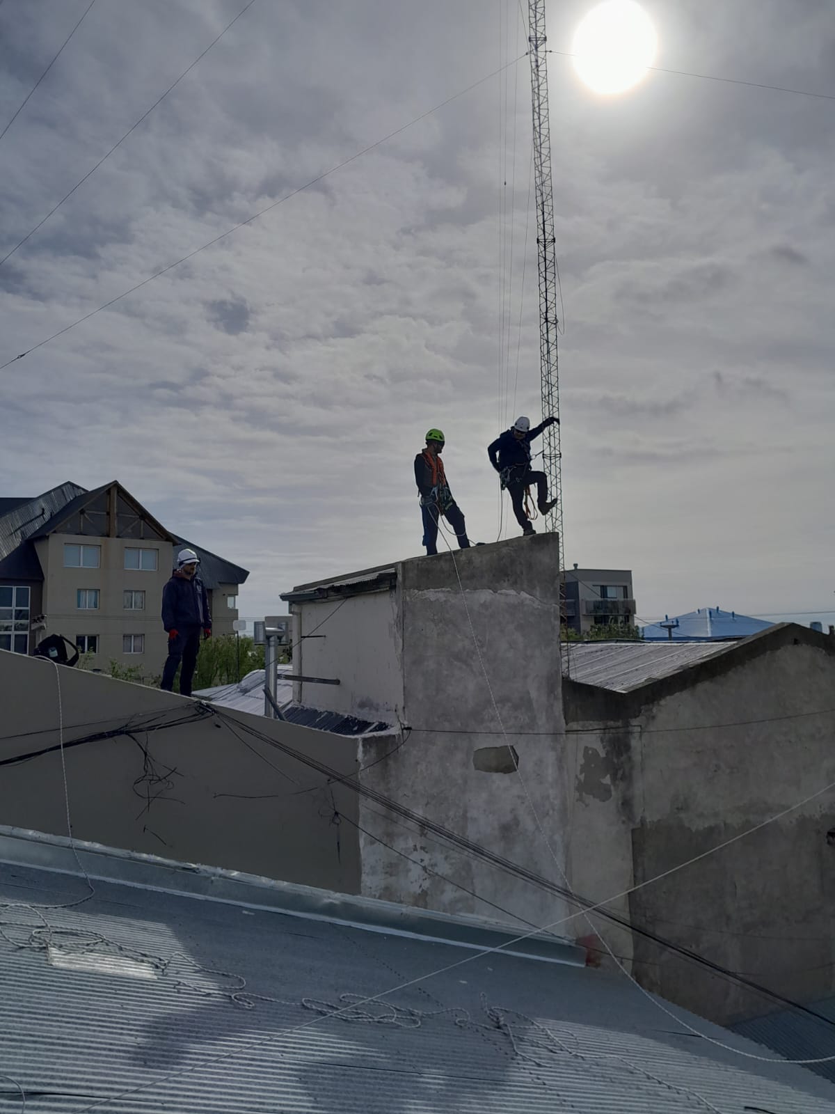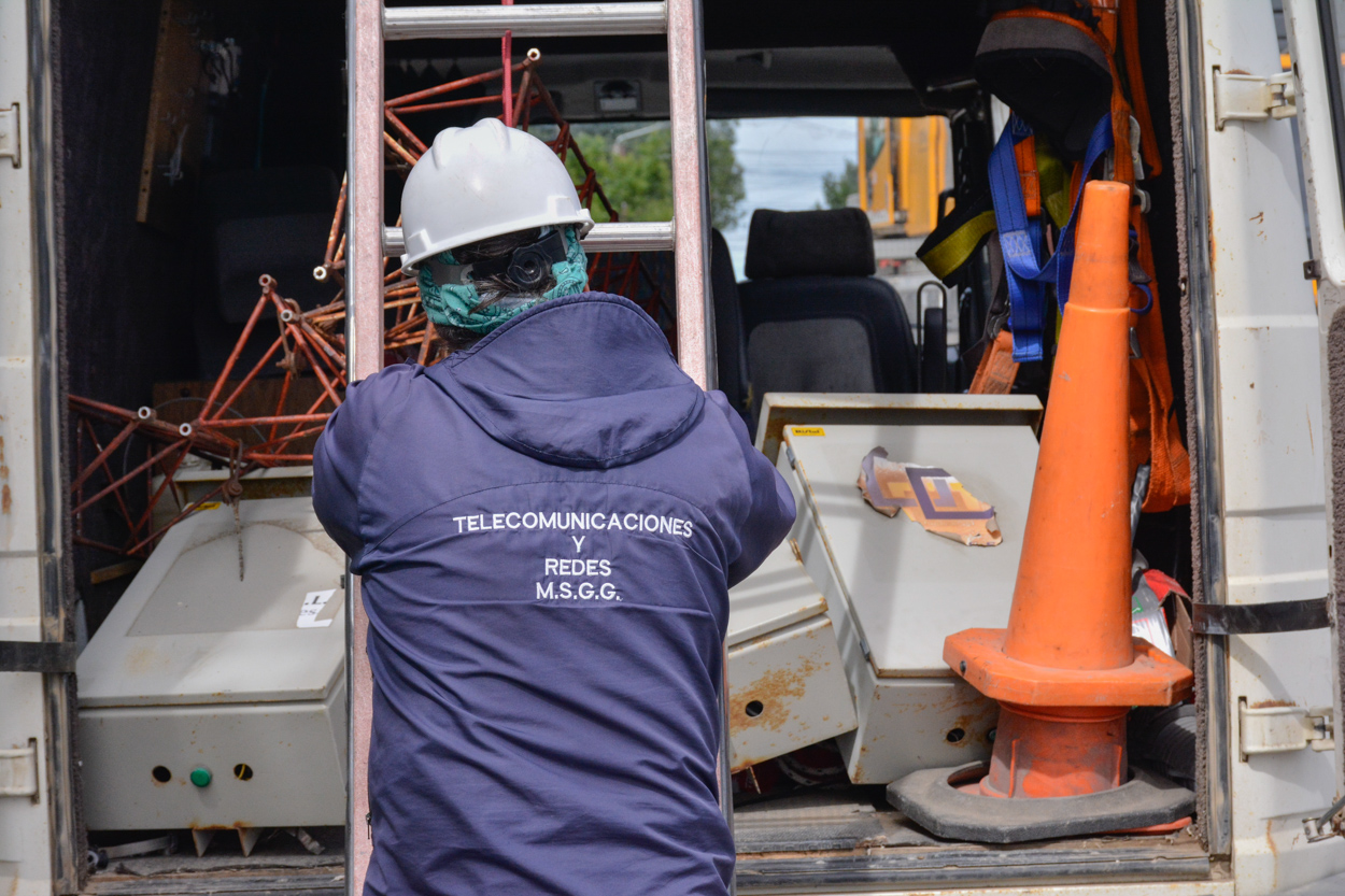 El subsecretario de Telecomunicaciones, Carlos Cassano, estuvo supervisando todo el trabajo realizado por su equipo junto a una empresa, que proveyó el vehículo con pluma, especial para alcanzar grandes alturas.